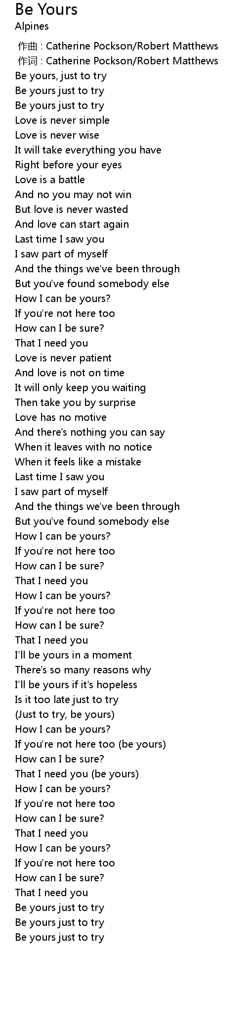 | [02:37.86] | Just to try, be yours |