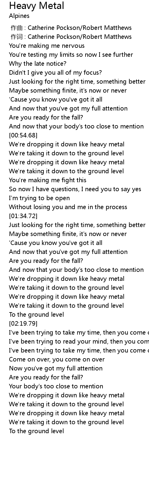| [00:55.20] | We' re dropping it down like heavy metal |