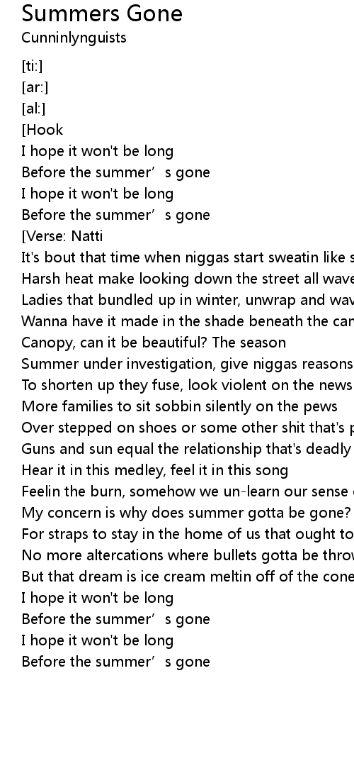 | [00:54.78] | My concern is why does summer gotta be gone? |
