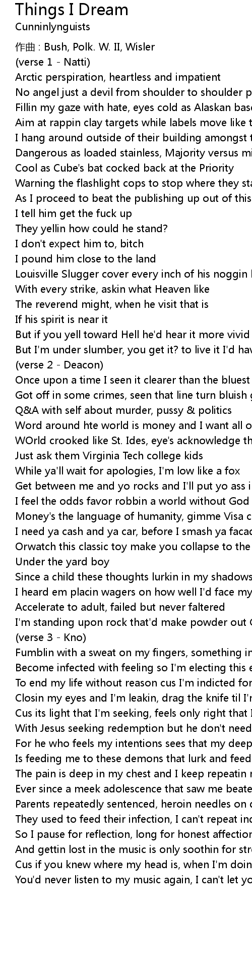| 歌曲 | Things I Dream |