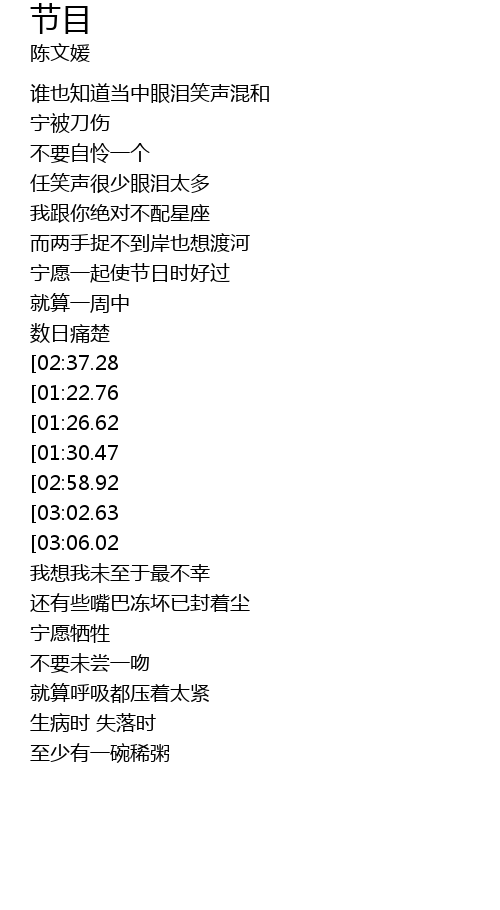 | [02:51.62][01:30.47] | 若有福 做你的最后节目 |
