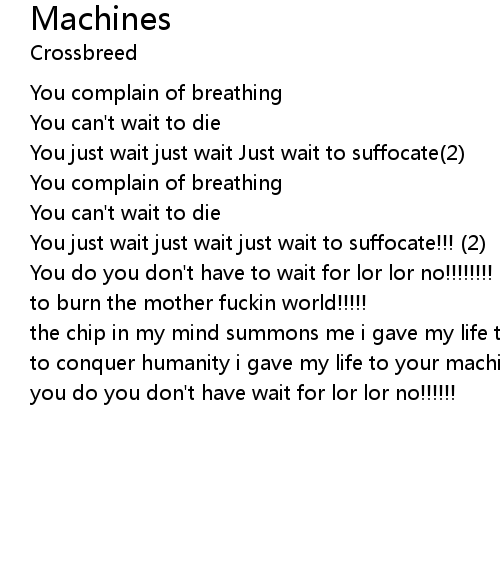 | to conquer humanity i gave my life to your machine | |