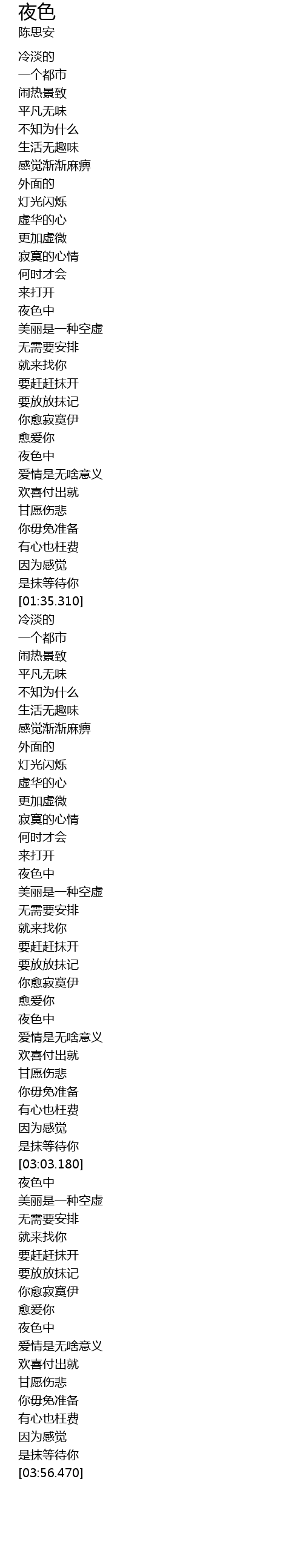 | [03:35.150] | 夜色中 |