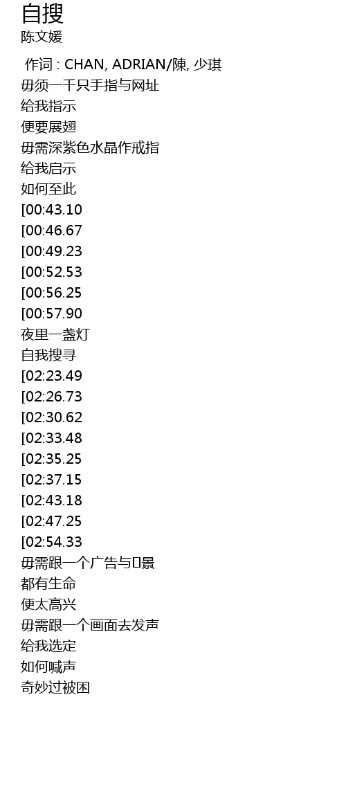 | [03:30.77][02:35.25][01:11.93] | 自我搜寻 |