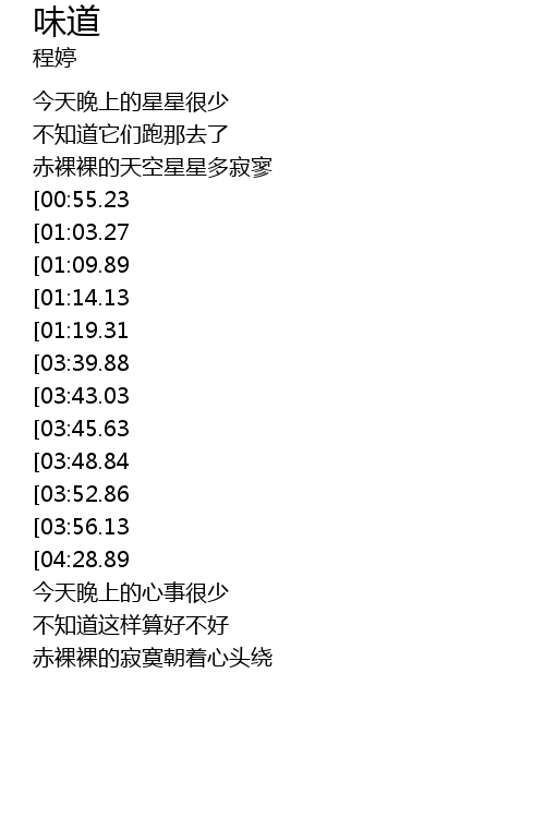 | [04:15.49][03:48.84][01:31.48] | hé nǐ shēn shàng de wèi dào |