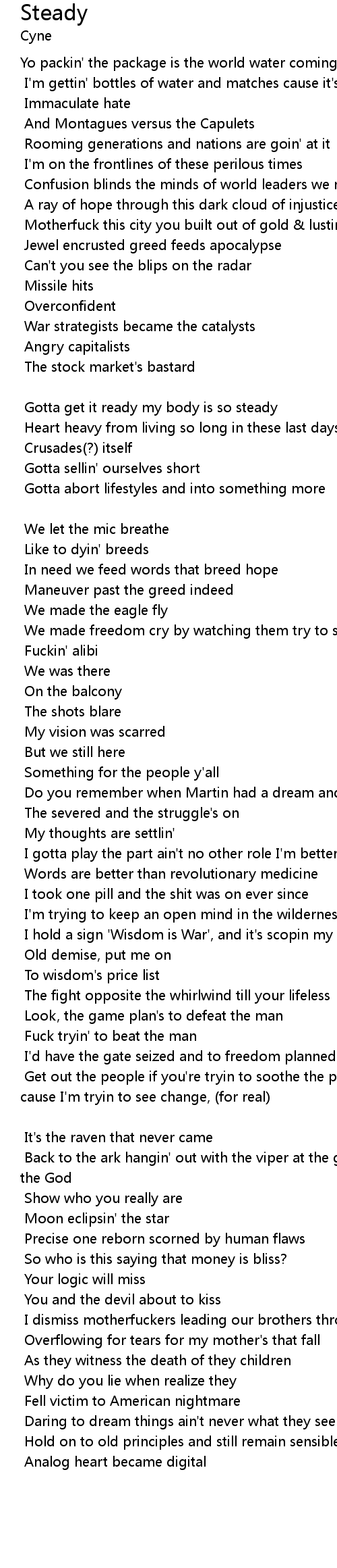 Get out the people if you're tryin to soothe the pain but if not, move over cause I'm tryin to see change, (for real) |