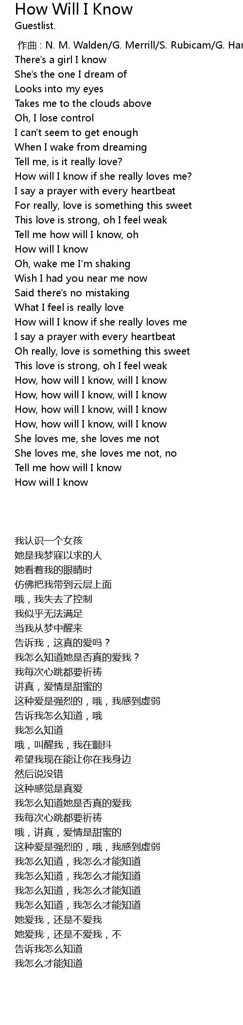 | 歌曲 | How Will I Know |