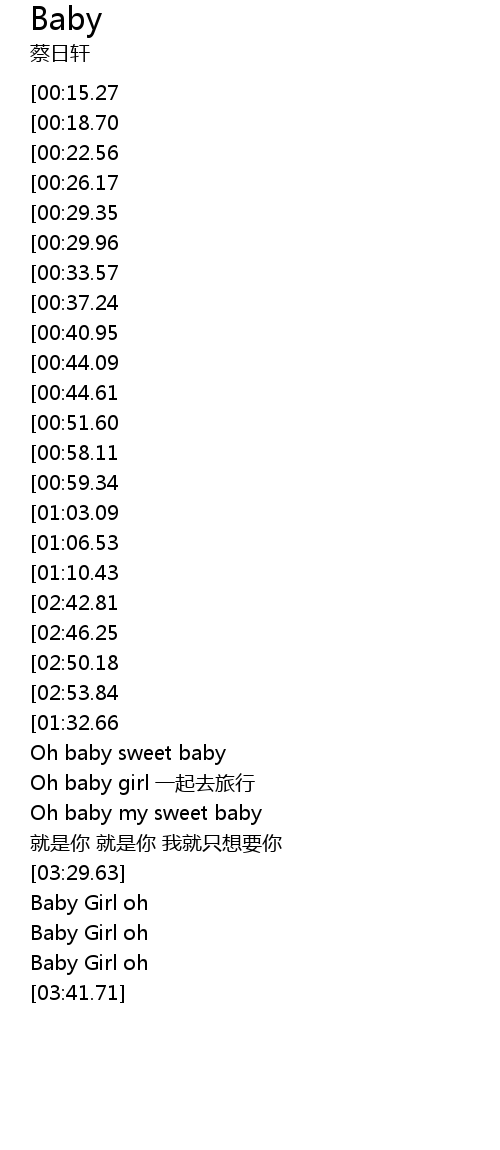 | [02:27.70][00:59.34] | Baby Girl oh 就是你 不想和你分离 |