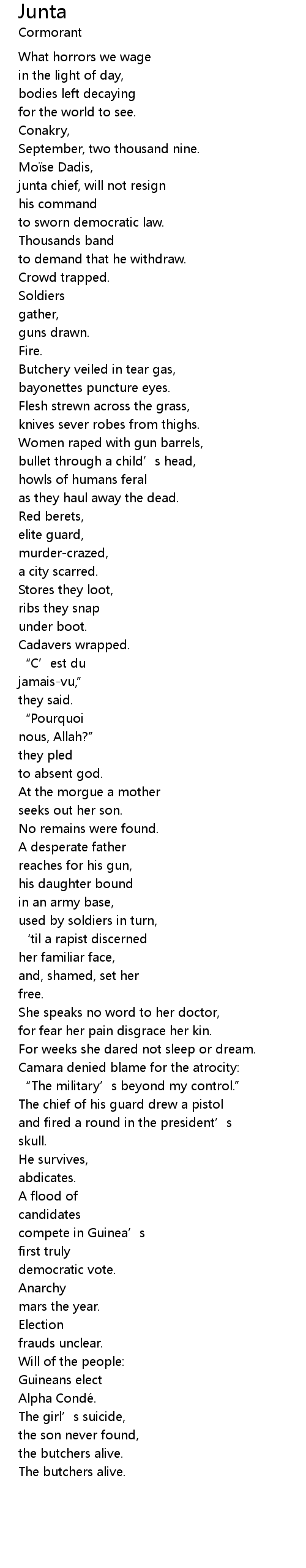 | Camara denied blame for the atrocity: | |