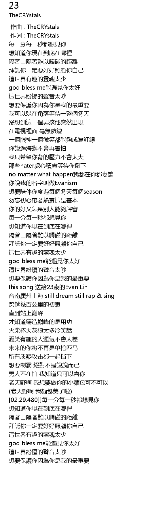 | [01:55.000] | this song 送給23歲的Evan Lin |