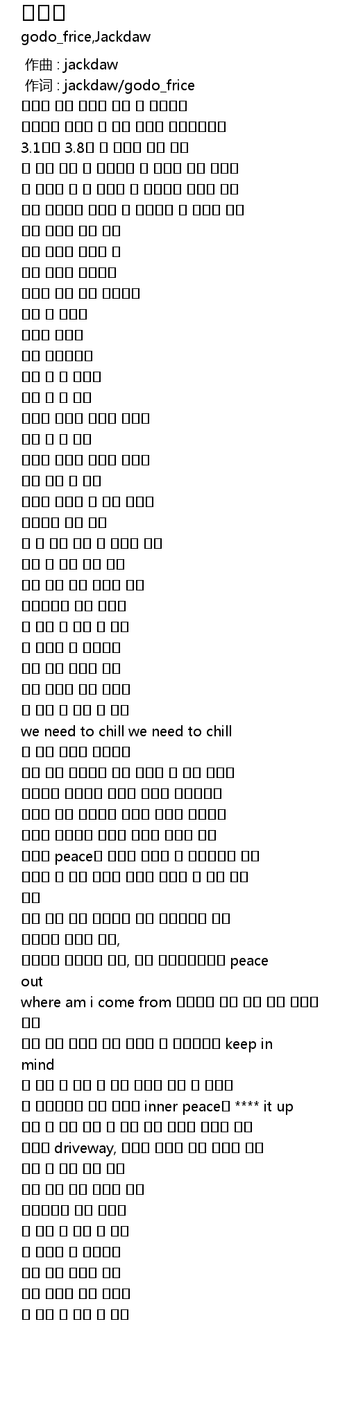 | [01:32.430] | 모두의 peace를 지키잔 말이지 못 알아들었음 비켜 |