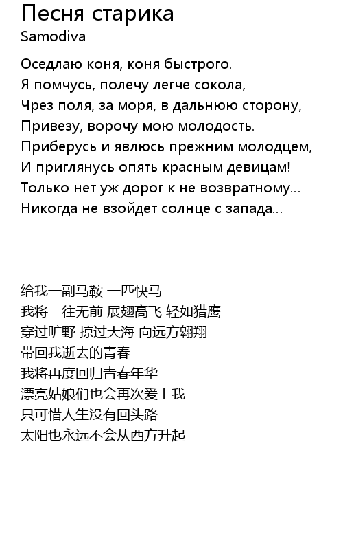 | [00:50.30] | Привезу, ворочу мою молодость. |