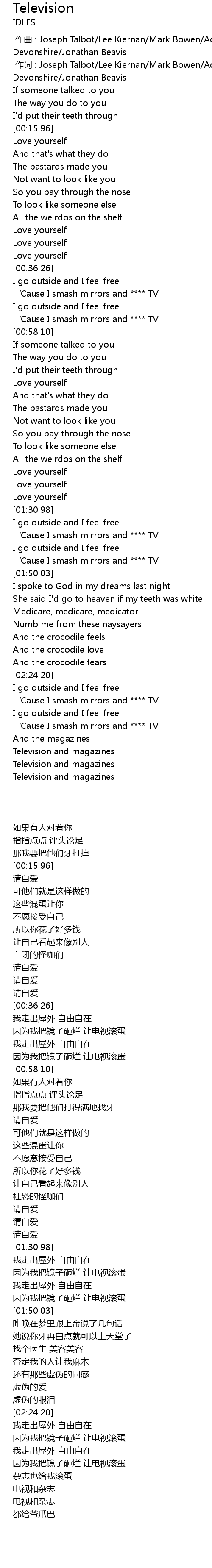| [01:45.42] | 因为我把镜子砸烂 让电视滚蛋 |