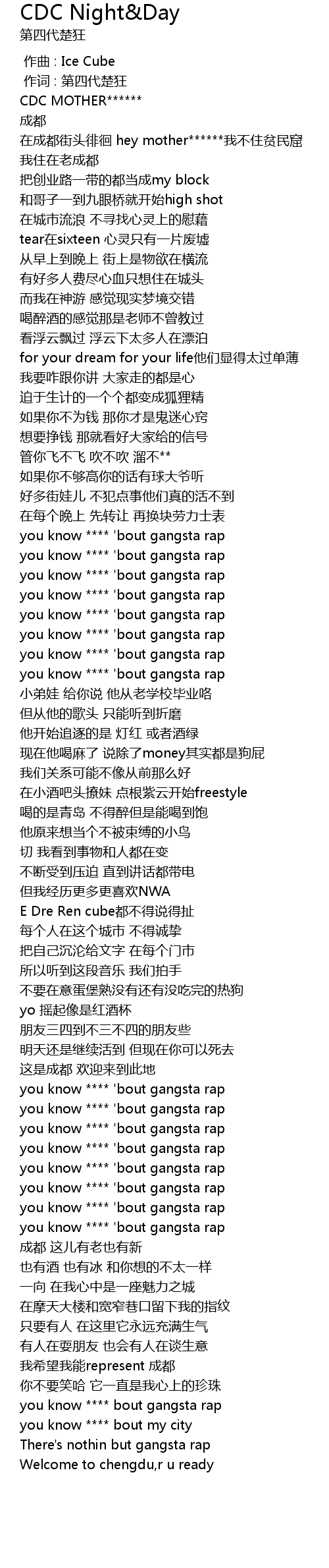 | [01:17.478] | you know **** 'bout gangsta rap |
