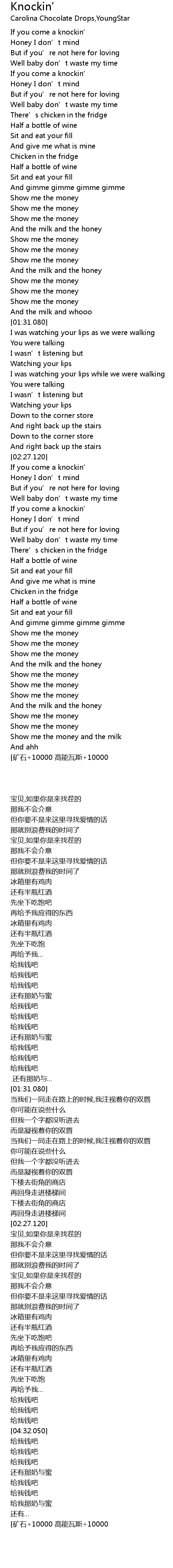| [03:52.970] | If you come a knockin’ |