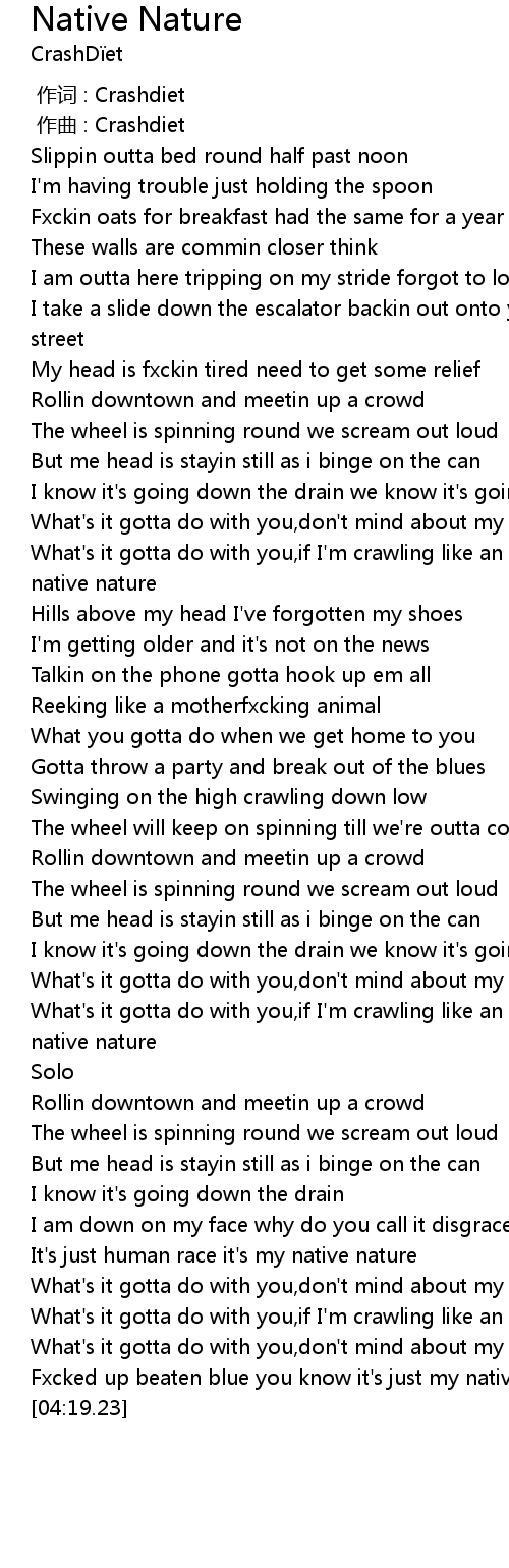 | [04:01.79] | Fxcked up beaten blue you know it' s just my native nature |