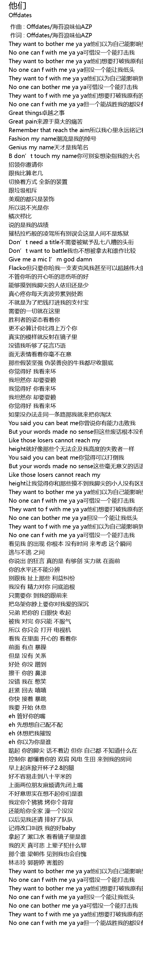 | [00:15.247] | They want to bother me ya ya他们以为自己能影响到我 |