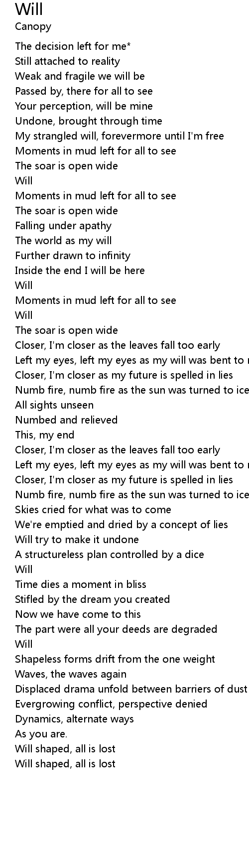 Left my eyes, left my eyes as my will was bent to rust |
