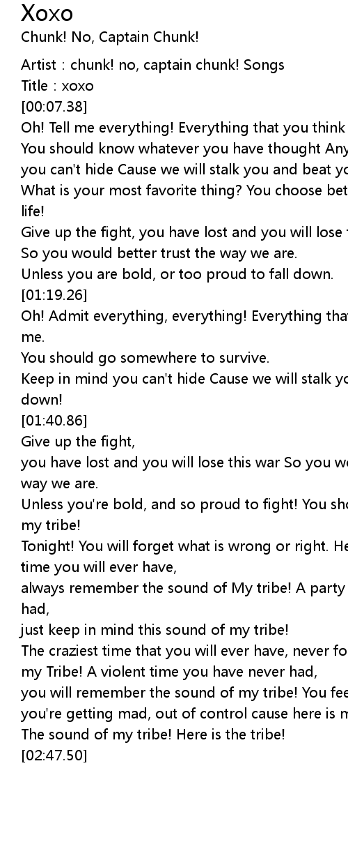 | [00:01.85] | Artist: chunk! no, captain chunk! Songs |