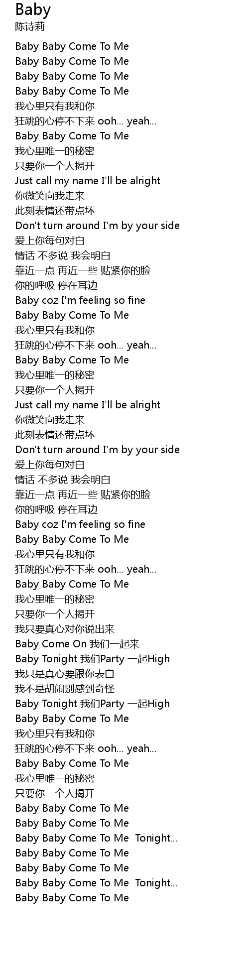 | [00:34.65] | Baby Baby Come To Me |