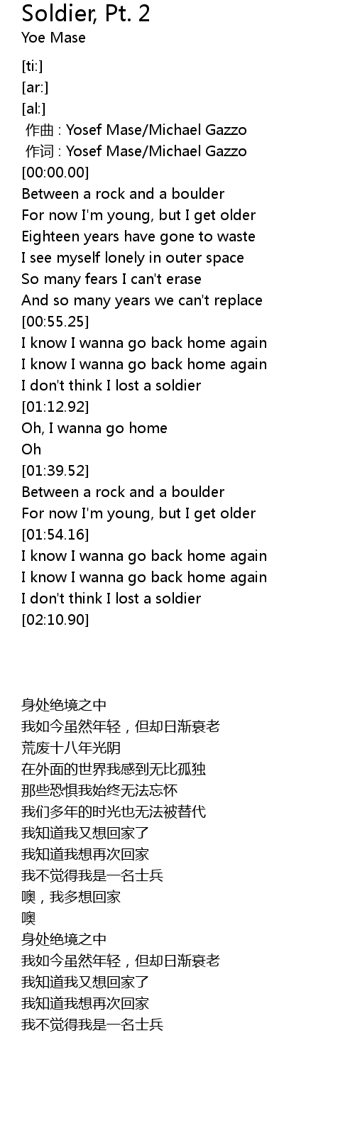 | [00:00.000] | 作词 : Yosef Mase/Michael Gazzo |
