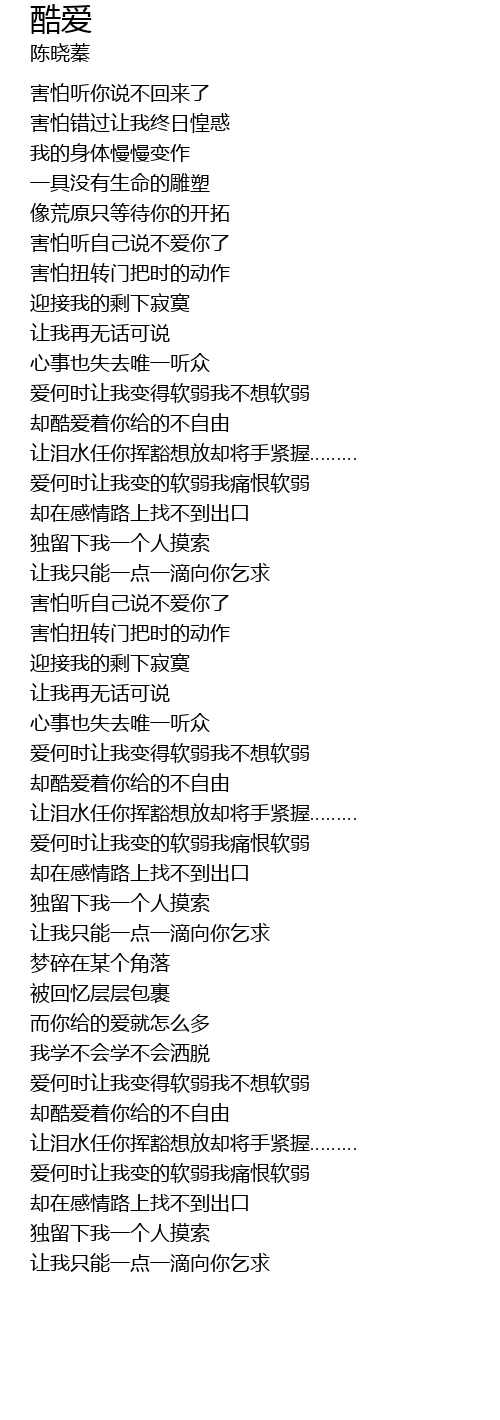| [02:21.55] | 害怕听自己说不爱你了 |