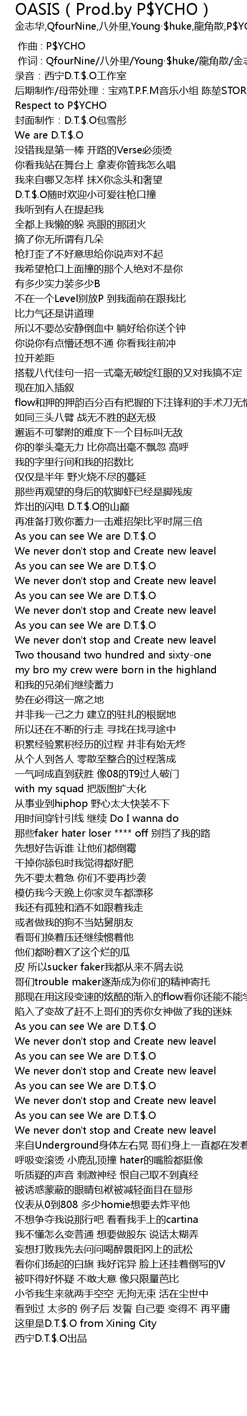 | [03:46.12] | 这里是D.T.$.O from Xining City |