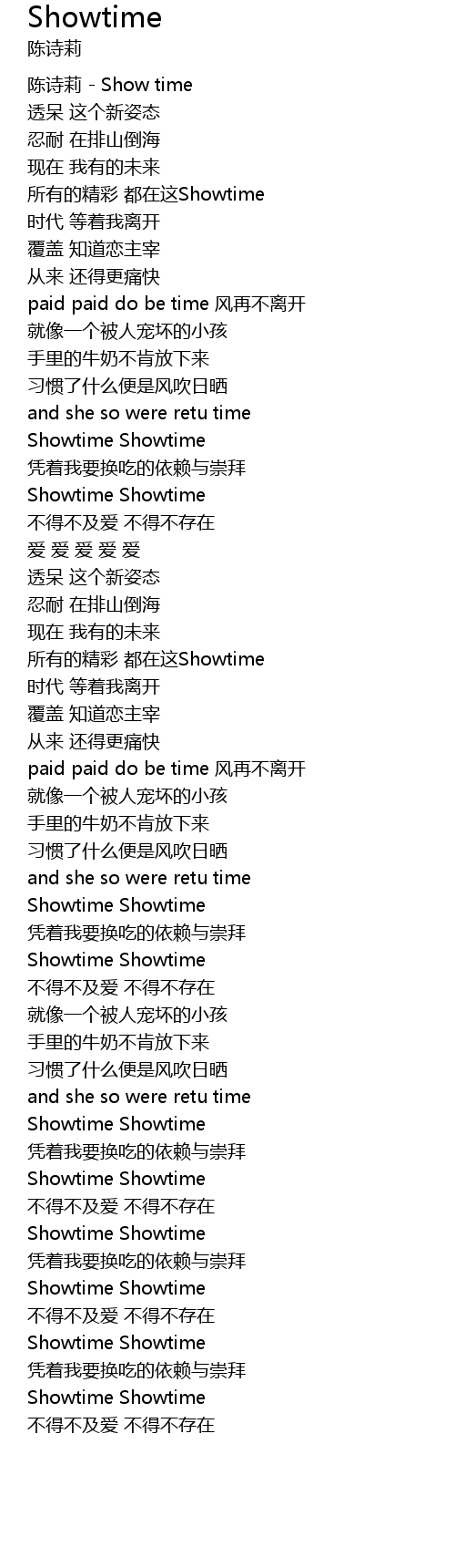 | [00:01.94] | 陈诗莉 - Show time |