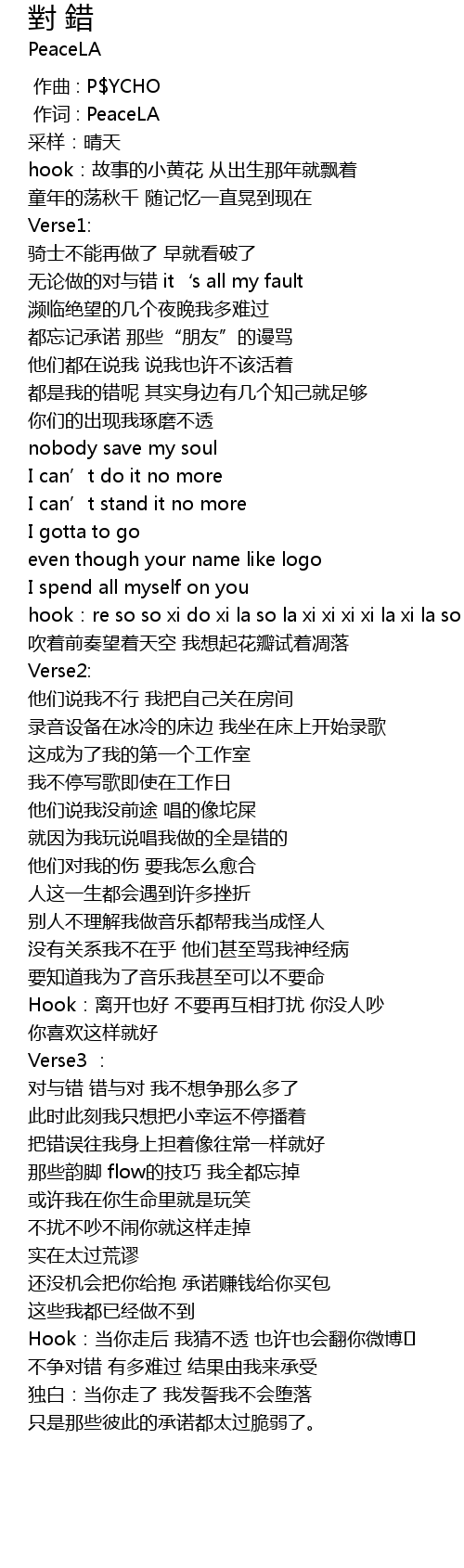 | [00:00.433] | 作词 : PeaceLA |