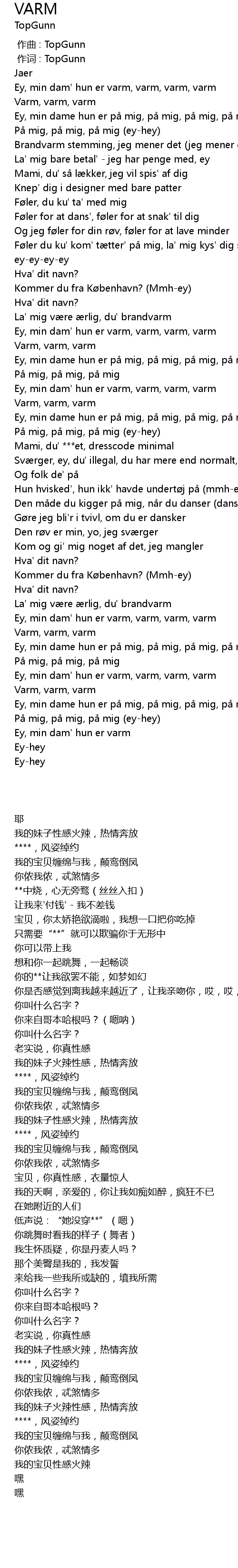 | [00:49.63] | Ey, min dam' hun er varm, varm, varm, varm |