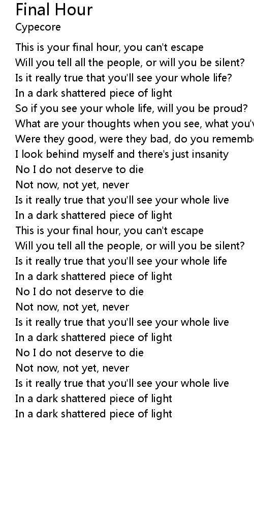| This is your final hour, you can't escape | |