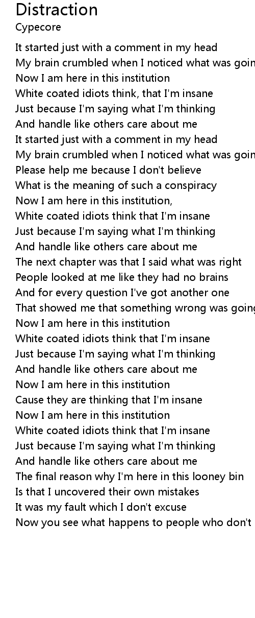 | White coated idiots think, that I'm insane | |