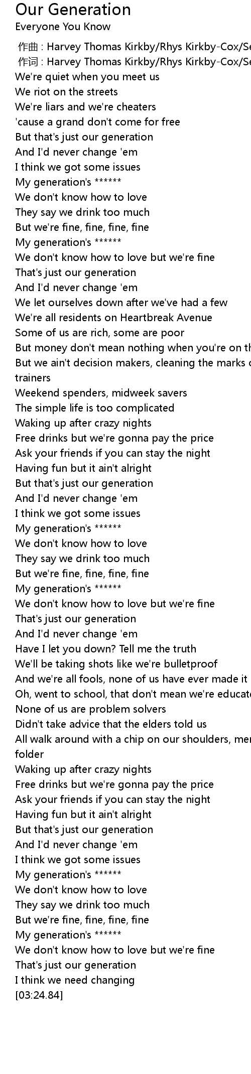 | [02:33.82] | Didn' t take advice that the elders told us |