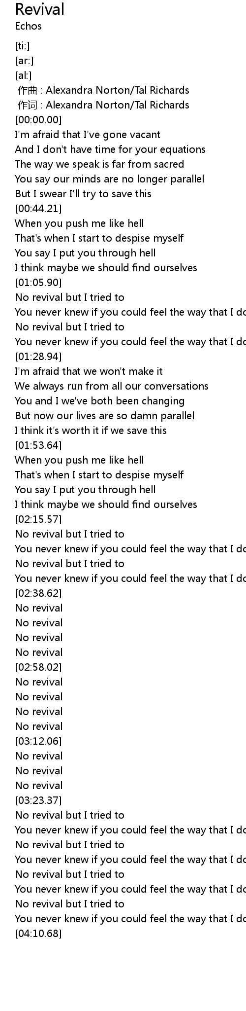 | [00:00.000] | zuò qǔ : Alexandra Norton Tal Richards |