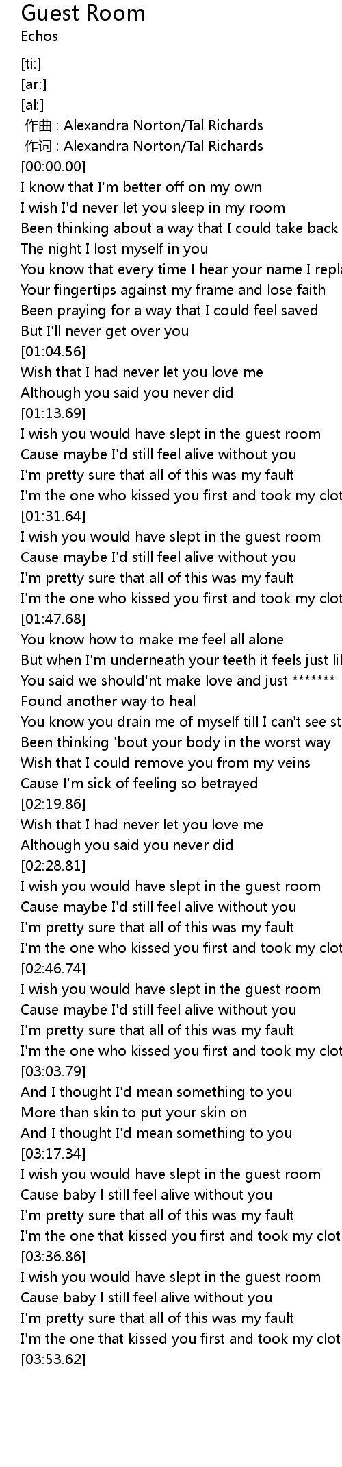 | [02:30.32] | I wish you would have slept in the guest room |