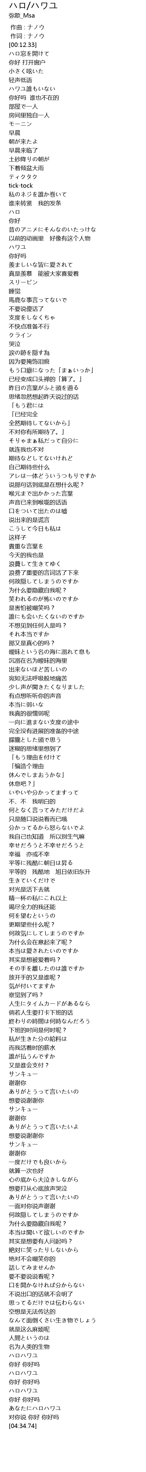 | [00:55.67] | ハロ |