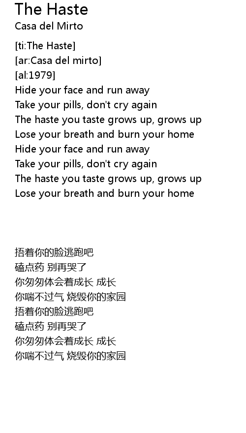 | [00:57.43] | 你喘不过气 烧毁你的家园 |