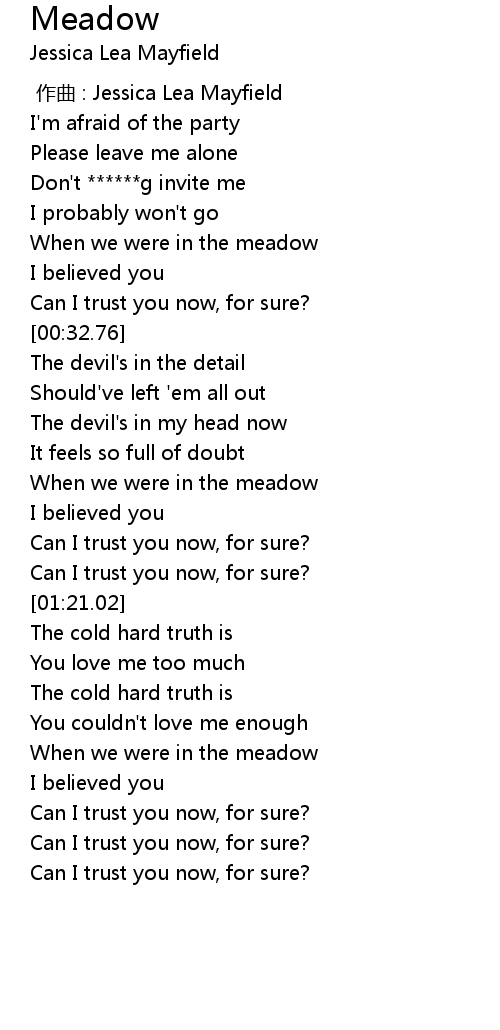 | [00:00.000] | 作曲 : Jessica Lea Mayfield |