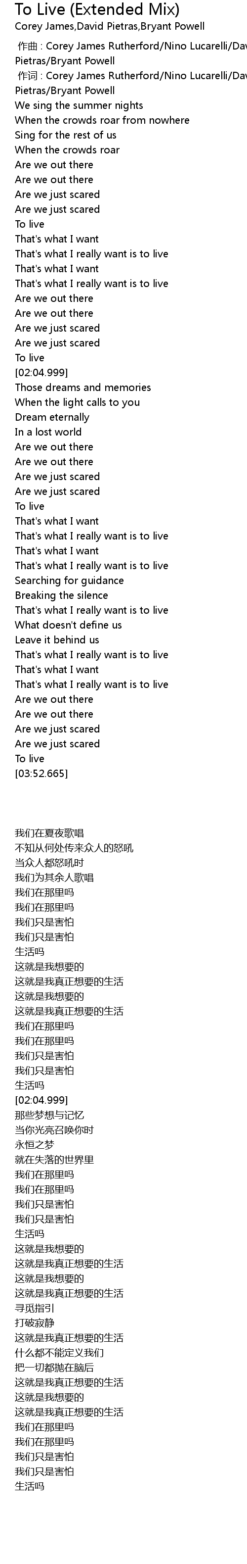 | [00:01.000] | 作词 : Corey James Rutherford/Nino Lucarelli/David Adam Pietras/Bryant Powell |