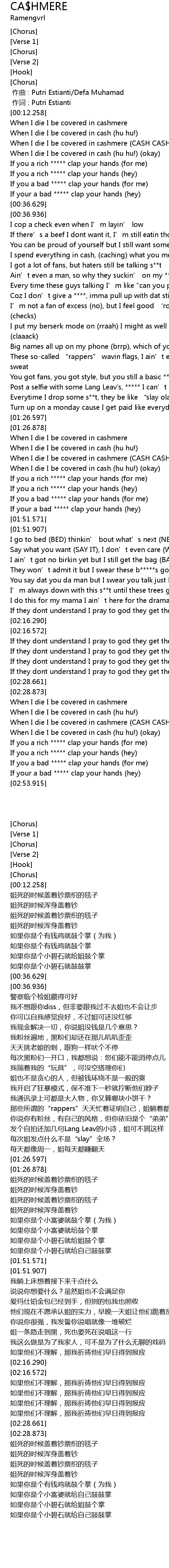| [02:35.342] | When I die I be covered in cashmere CASH CASH |