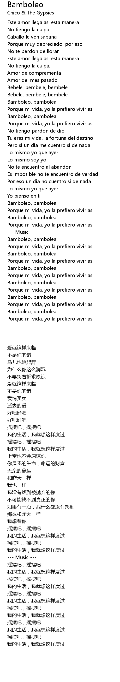 Bamboleo, bambolea |