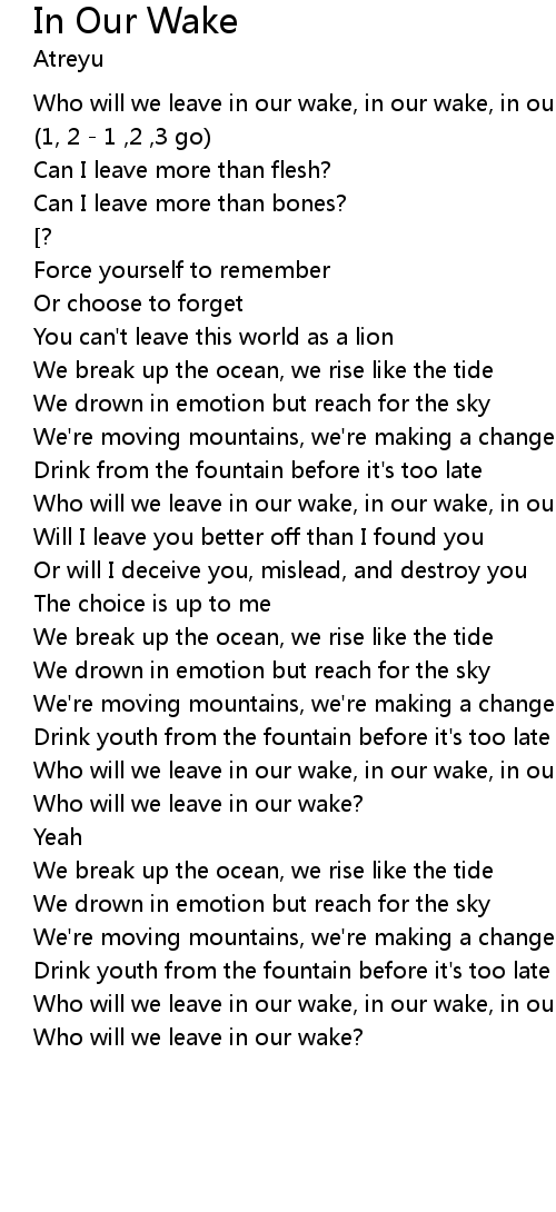 Who will we leave in our wake, in our wake, in our wake? x2 |