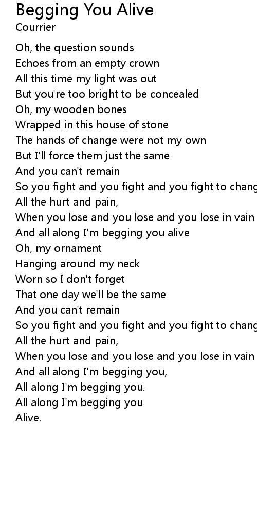 And all along I'm begging you alive |