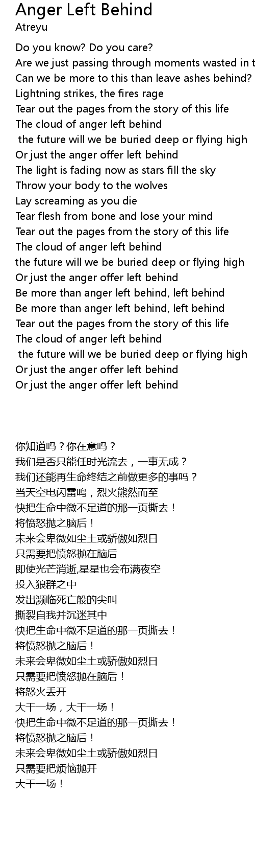 Be more than anger left behind, left behind |