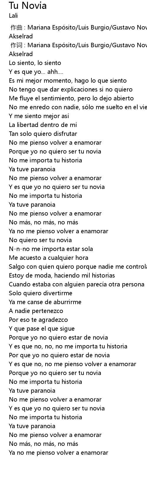 | [00:44.39] | Porque yo no quiero ser tu novia |