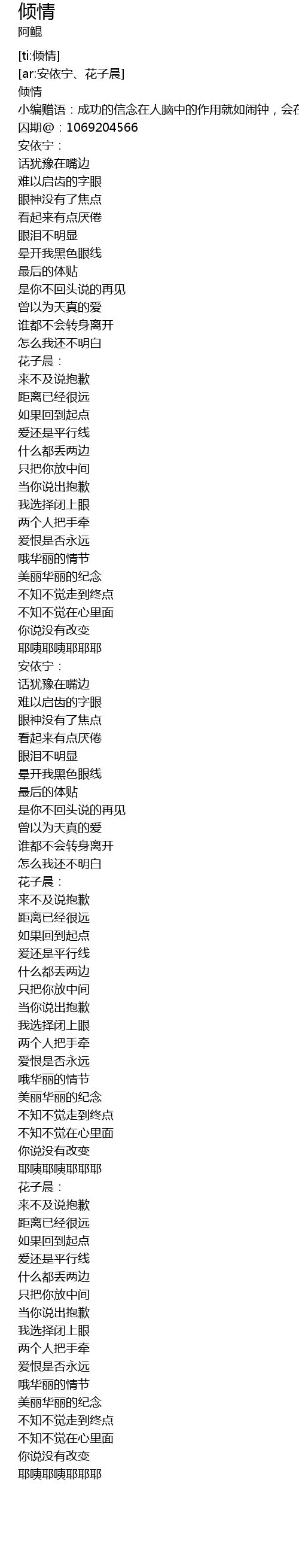 | [00:25.534] | yǎn shén méi yǒu le jiāo diǎn |
