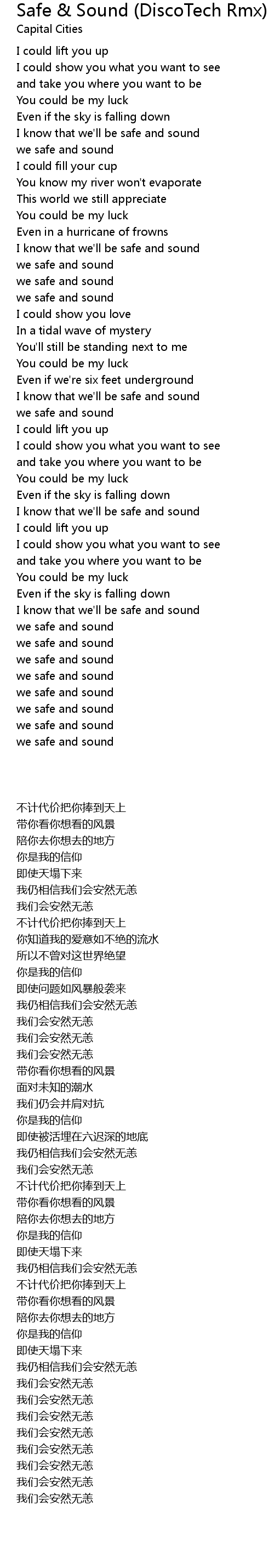 I know that we'll be safe and sound |
