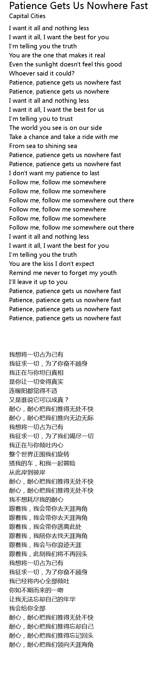 Patience, patience gets us nowhere fast |
