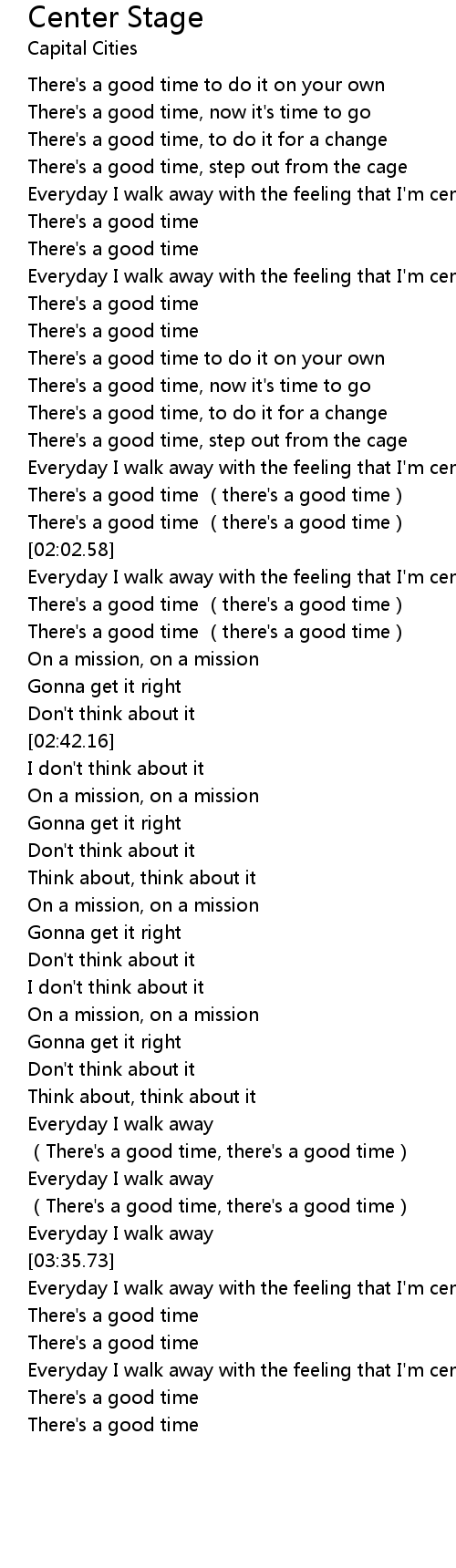 | [01:42.83] | There' s a good time, now it' s time to go |