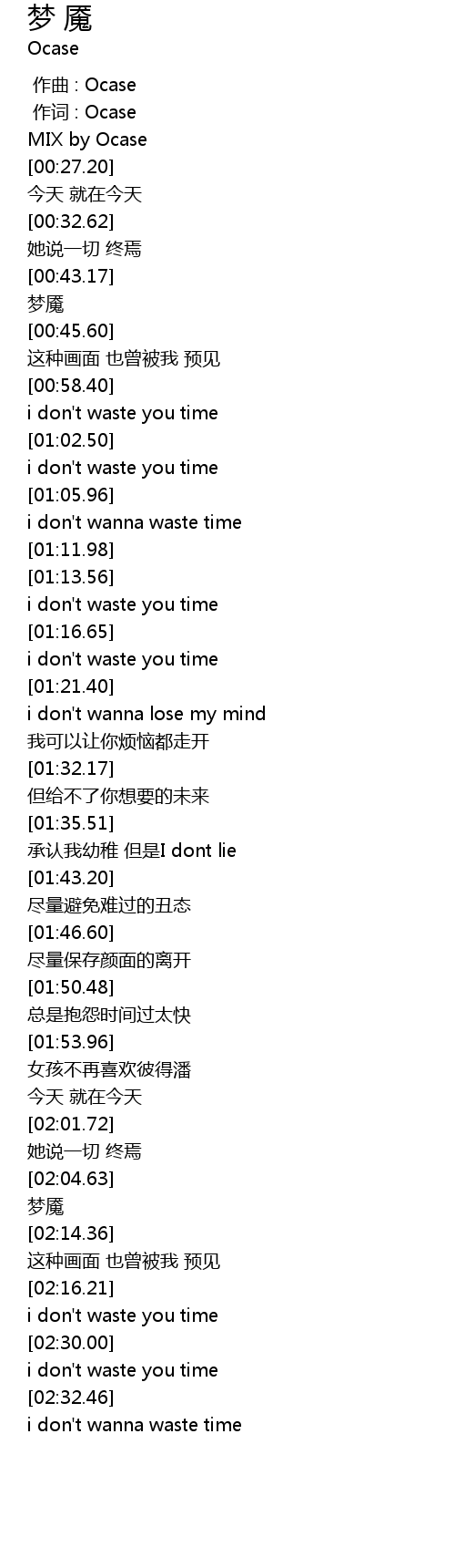 | [01:36.40] | 承认我幼稚 但是I dont lie |